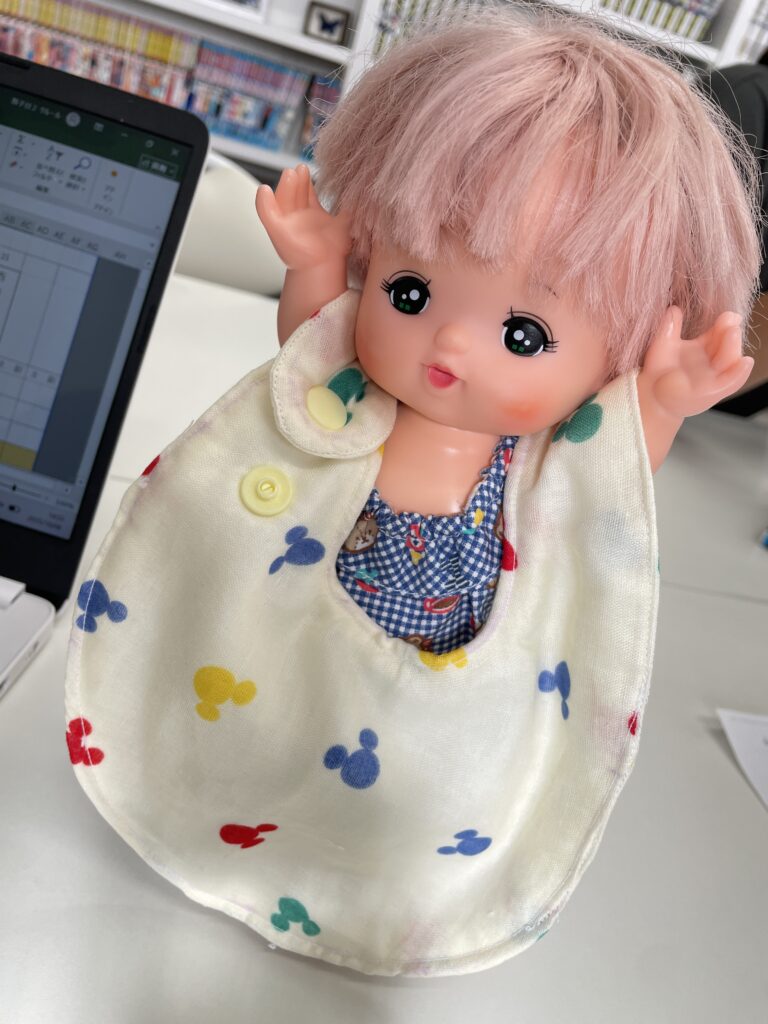 今、利用者さんのお孫さんがハマっているとの事で、そのお人形さんの洋服を作ってみる事に✨