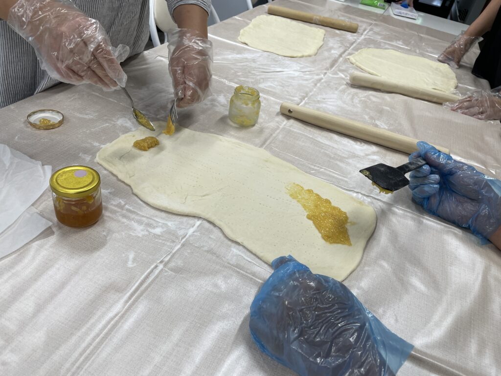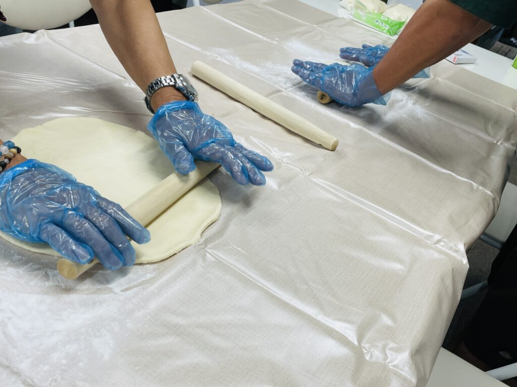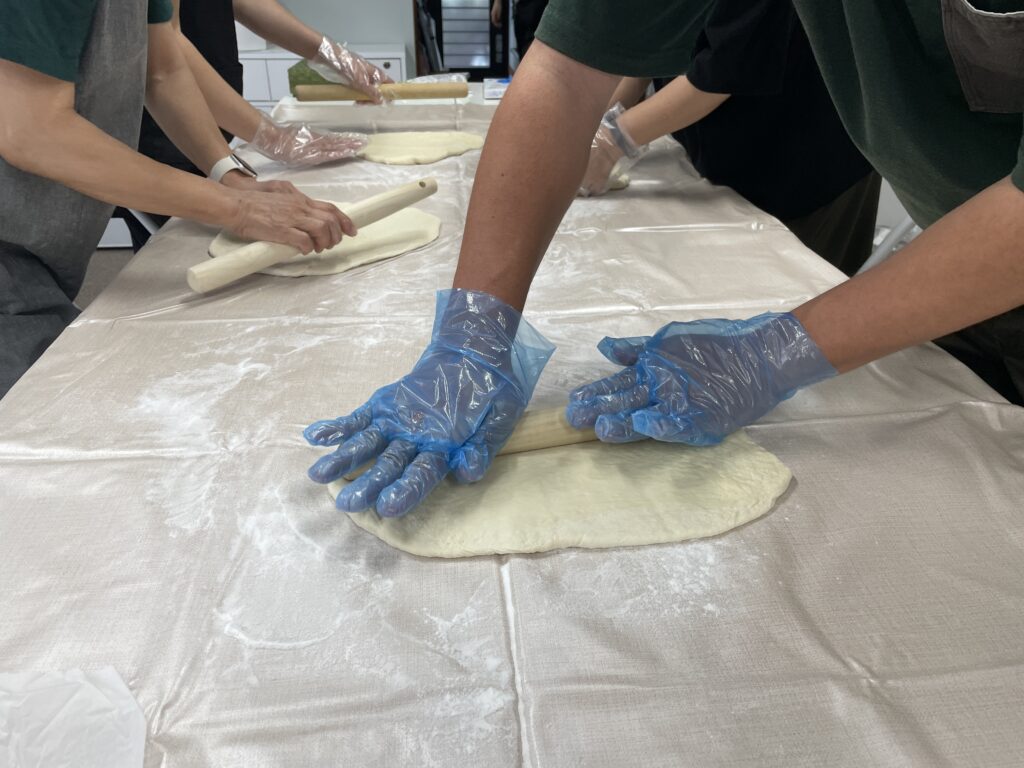生地はホームベーカリーで作って、皆で頑張って伸ばしました~🙌💕