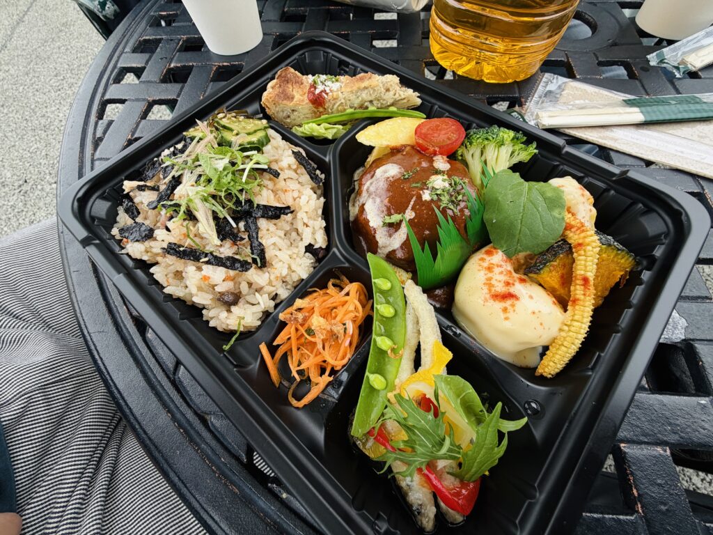 屋外でおしゃんなお弁当を食べたあと、公園内を自由に散策!